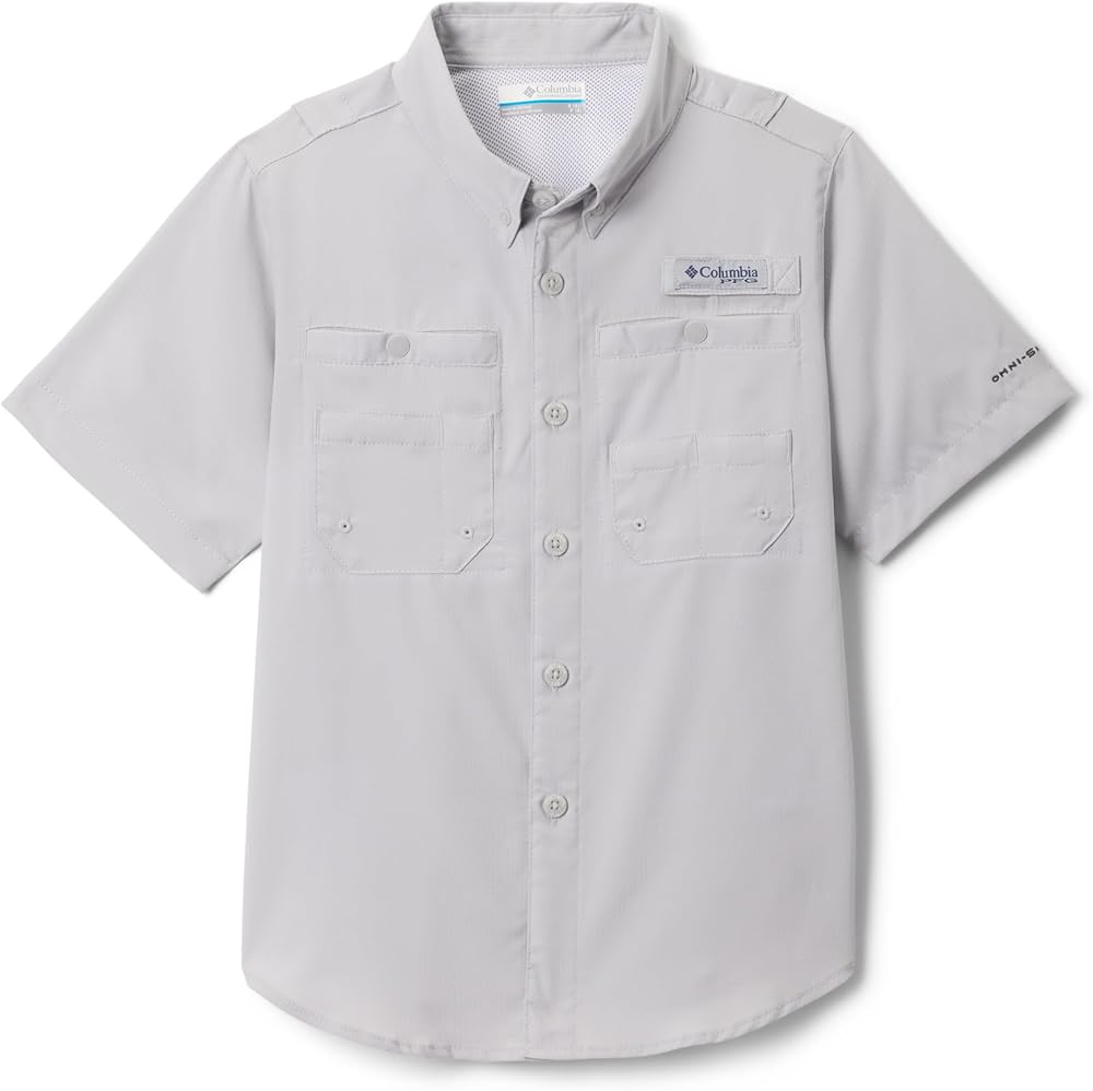 This ultra lightweight Ripstop button-down wicks away moisture and shields from the sun—ideal for fishing or just enjoying the outdoors.Ventilation at the back offers the ultimate in cool-wearing comfort, while a rod holder at the chest frees up their hands.It's a performance classic, featuring a powerful combination of our Omni-Shade UV-blocking protection with Omni-Wick moisture-wicking technology.Columbia offers this youth-sized short sleeve in multiple colors and sizes.Regular Fit.To ensure the size you choose is right, utilize our sizing chart and the following measurement instructions: To determine the neck size, measure at the base or thickest part of the neck.For the chest, measure at the fullest part of the chest, under the armpits, and over the shoulder blades, keeping the tape measure firm and level.