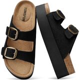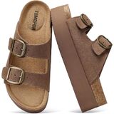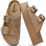 Genuine Suede Leather Upper for Durability and Style: These platform sandals women 2026 dressy feature 100% suede leather, offering soft and a skin-friendly feel, velvety texture comfortably shapes your feet over time. The well-made summer platform women's sandals with adjustable metal buckles is suitable for different foot shapes. Crafted with a classic cork footbed, making you look stylish and cute for daily outings.