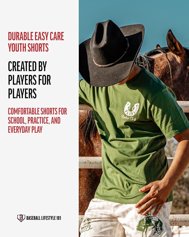 Allover horseshoe and star graphic with bold western colors stands out in the dugout, at the gym, or on rest days. BL101 branding adds that baseball lifestyle edge. Built for players who bring that wild west mentality everywhere they go.