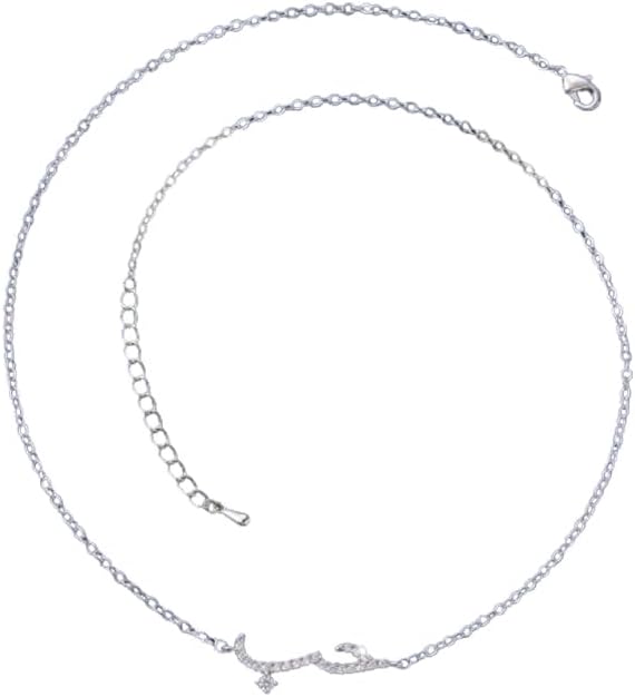 DESIGN:This silver plated Arabic Letter zircon necklace is delicate and fashion,filled diamond in the middle of the collarbone,which can highlight the beauty of our collarbone.the chain is thin but not easy to break, elegant and delicate