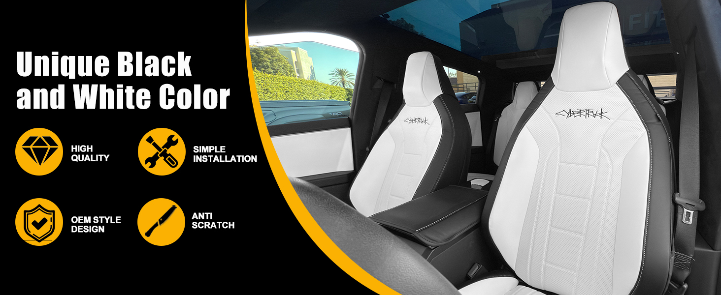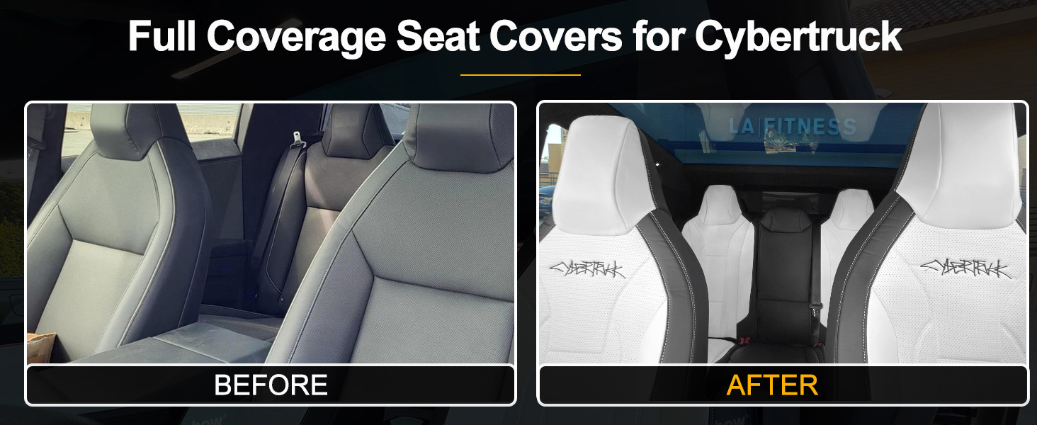 Custom Fit Design: Seat covers custom fit for Cybertruck 2024+. Package includes 1 set full-cover seat covers for Cybertruck (full surround front pair & half surround rear pair, include front & rear armrest covers)