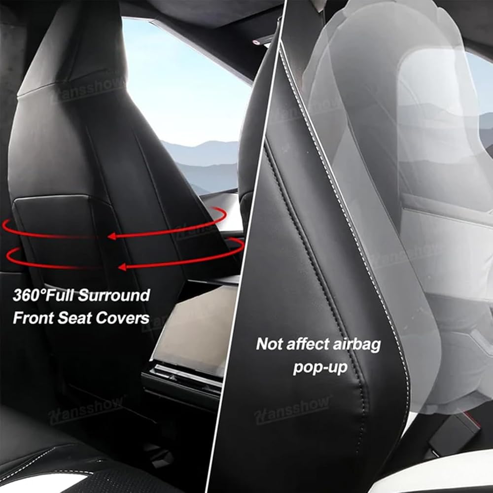Keep the Original Functionality: Hansshow seat covers for cybertruck are designed to not interfere with airbag functionality, Incorporate anti-slip backing materials to prevent them from shifting while driving. The breathable perforation design preserves the heated and cooled functions