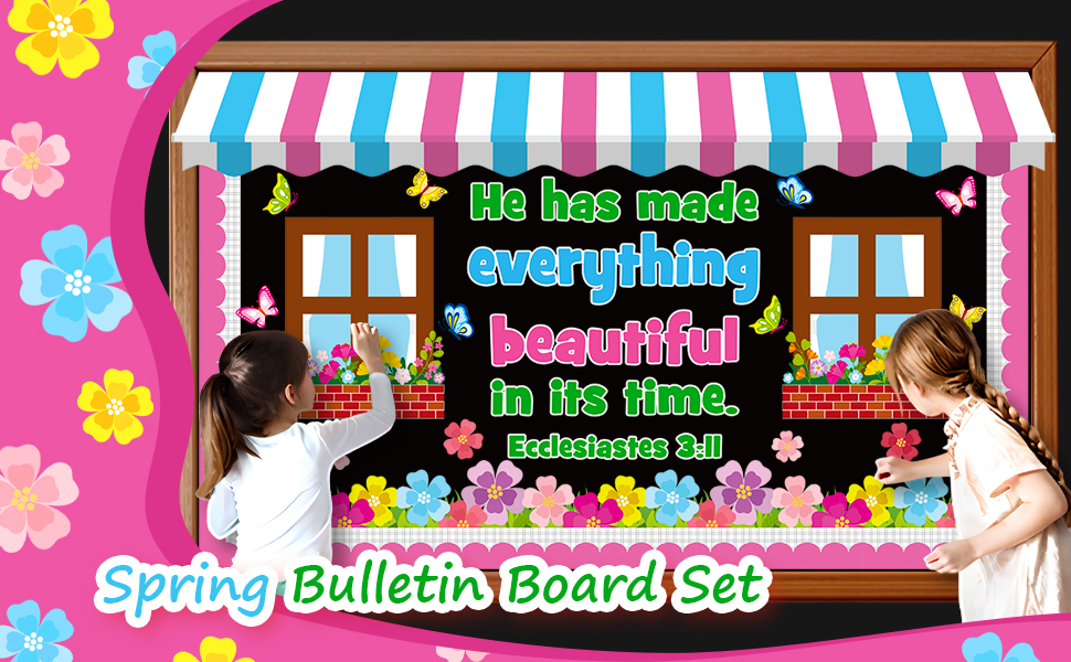 Spring Religious Bulletin Board Decorations: Designed with bible based messages, our spring flower classroom decorations feature vibrant flowers and butterflies etc. These vivid designs instantly capture students' attention, sparking their artistic creativity and transforming dull boards into positive learning environment that radiates the beauty of God's timing