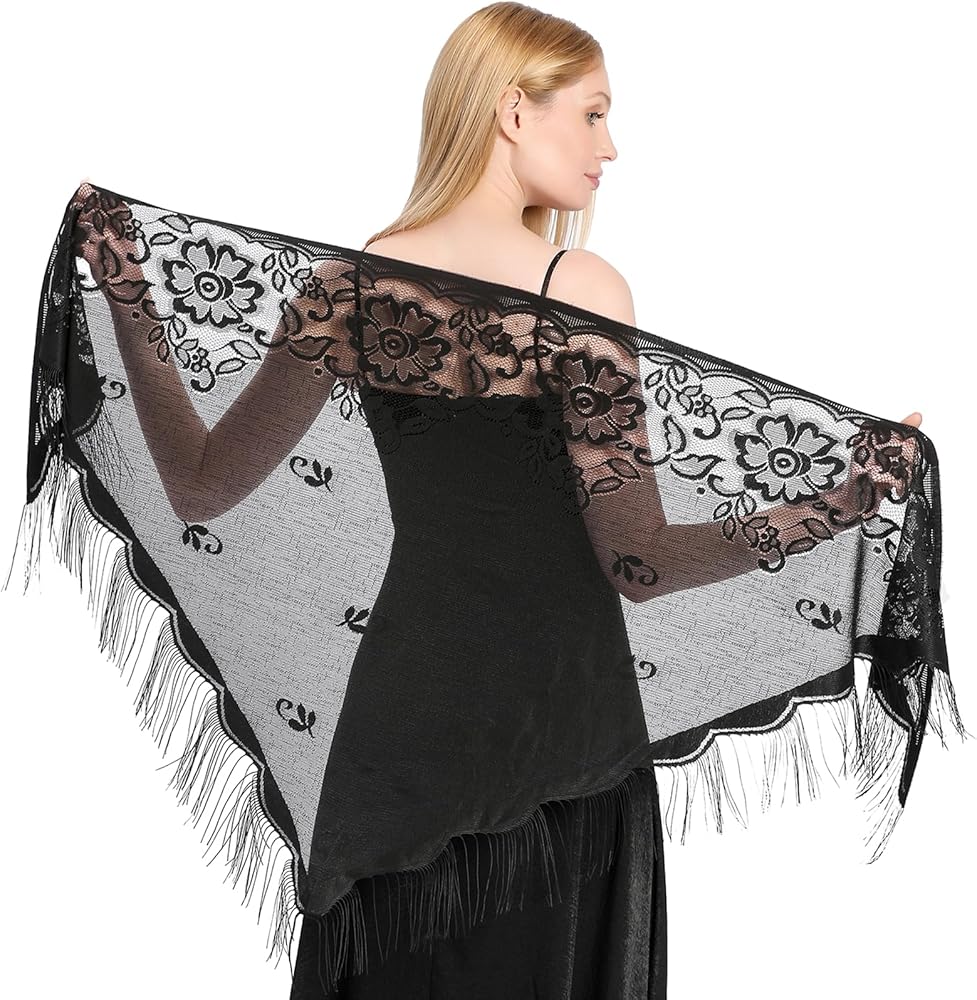 【Elegant Lace Design】Our lace shawl features intricate black lace patterns that add a touch of sophistication to any outfit, perfect for weddings, parties, or casual outings