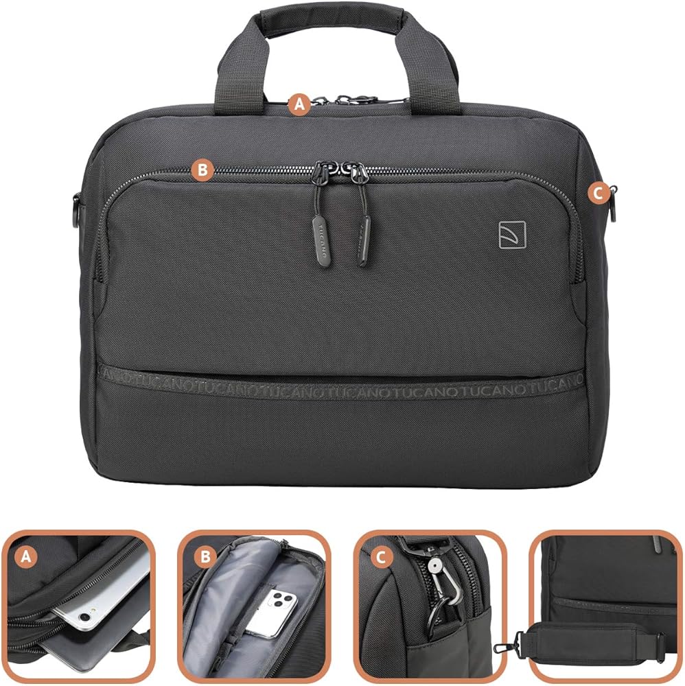 TUCANO Melange Neoprene Sleeve Compatible with MacBook Air/Pro 13" Laptop 12", 4mm Thick, Anti-Slip, Anti-Scratch - Black