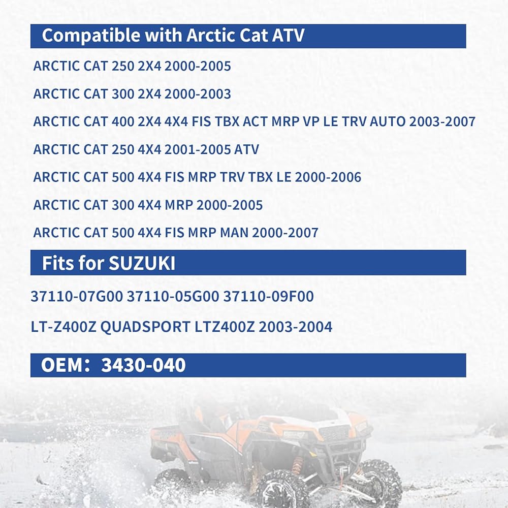 【Compatible Model】Fit for Arctic Cat ARCTIC CAT ATV 3430-040, ATV 250 2X4 2000-2005, ATV 300 2X4 2000-2003, 400 2X4 4X4 FIS TBX ACT MRP VP LE TRV AUTO 2003-2007, 250 4X4 2001-2005 ATV, 500 4X4 FIS MRP TRV TBX LE 2000-2006, ATV 300 4X4 MRP 2000-2005, 500 4X4 FIS MRP MAN 2000-2007. Fits for SUZUKI 37110-07G00 37110-05G00 37110-09F00 LT-Z400Z QUADSPORT LTZ400Z 2003-2004 replacement number 3430-040.