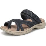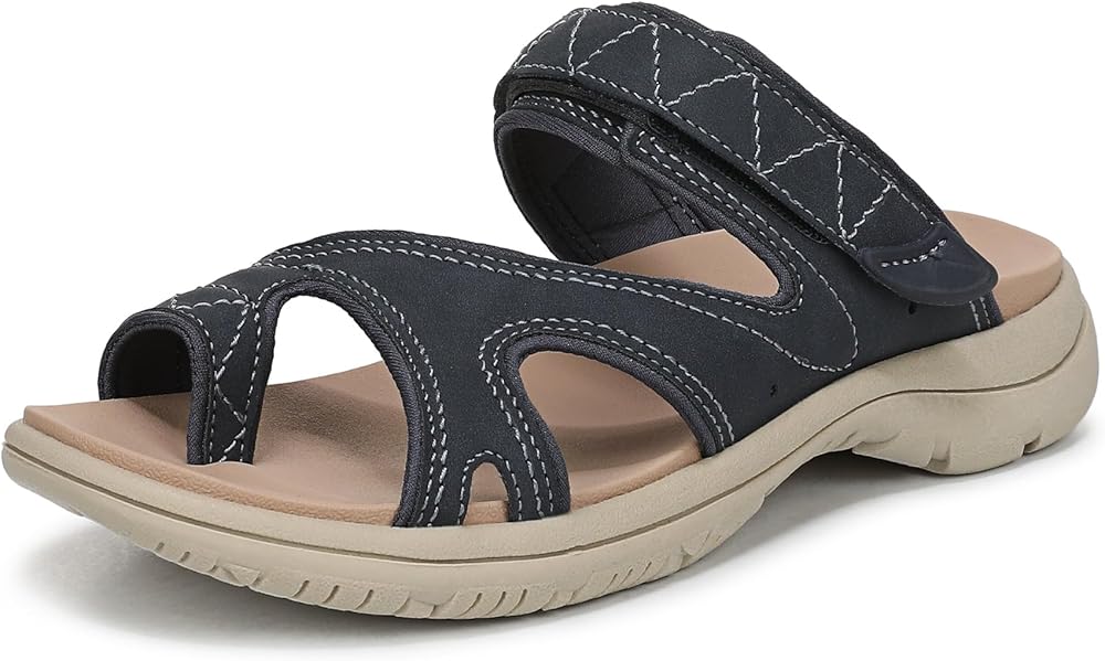 Step into the season's freshest look with these sporty and comfortable sandals for women—iconic comfort meets cool-girl style in every step. ICONIC COMFORT: Insole Technology with anatomical cushioning, comfort, & support. FIT: Adjustable hook-and-loop closure for an easy, secure fit. STYLE: Women's strappy sandals with open toe, multiple straps, quilted stitching detail, round open toe, and a 1 3/8 inch flat heel. FEEL-GOOD FLEX: Ultra-flexible soft, lightweight outsole that moves with you. MATERIALS: Faux leather upper with fabric lining. CONSCIOUSLY PACKAGED: This style is shipped in an environmentally preferred 1-piece box made with primarily recycled materials that can be recycled & soy-based inks. Level up your sandal game with this pair of women's strappy sandals—made for sunny days, spontaneous adventures, and all the comfort you crave. Feel iconic and stay cool in these must-have women's sandals crafted for endless summer fun.