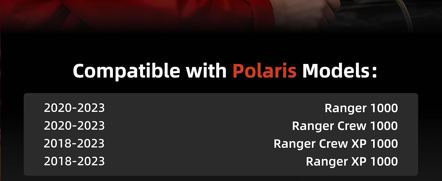 Vehicle Compatibility: Compatible with Polaris Ranger 1000 (2020-2023), Ranger Crew 1000 (2020-2023), Ranger Crew XP 1000 (2018-2023), Ranger XP 1000 (2018-2023), Polaris PRO XD Full Size Gas and PRO XD Full Size Gas Crew (2022-2024). Always verify model and year before purchasing.