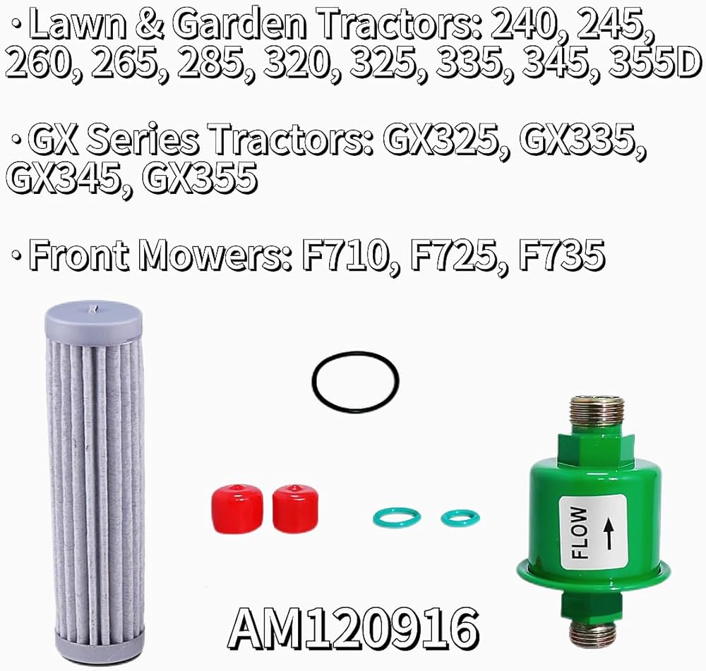 Upgrade your transmission performance with the premium AM120916 M806848 Transmission Filter & Gasket Kit! This high-quality replacement kit is specifically designed to fit John Deere lawn and garden tractors (240, 245, 260, 265, 285, 320, 325, 335, 345, 355D) and front mowers (F710, F725, F735), as well as the popular GX series (GX325, GX335, GX345, GX355). Crafted with durable, corrosion-resistant materials, the filter effectively traps dirt, metal shavings, and contaminants in transmission oil, preventing wear on critical components and ensuring smooth gear shifts. The included gasket provides a tight, leak-proof seal, eliminating oil leakage and maintaining optimal oil pressure for reliable operation. This direct-fit kit replaces OEM parts AM120916 and M806848, ensuring perfect compatibility without the need for modifications. Installation is straightforward, making it ideal for both DIY enthusiasts and professional mechanics. Whether you're maintaining your lawn tractor for residential use or keeping commercial mowers in top shape, this filter and gasket kit delivers long-lasting protection and enhances the overall lifespan of your John Deere equipment.