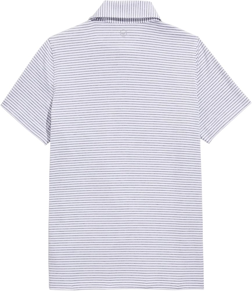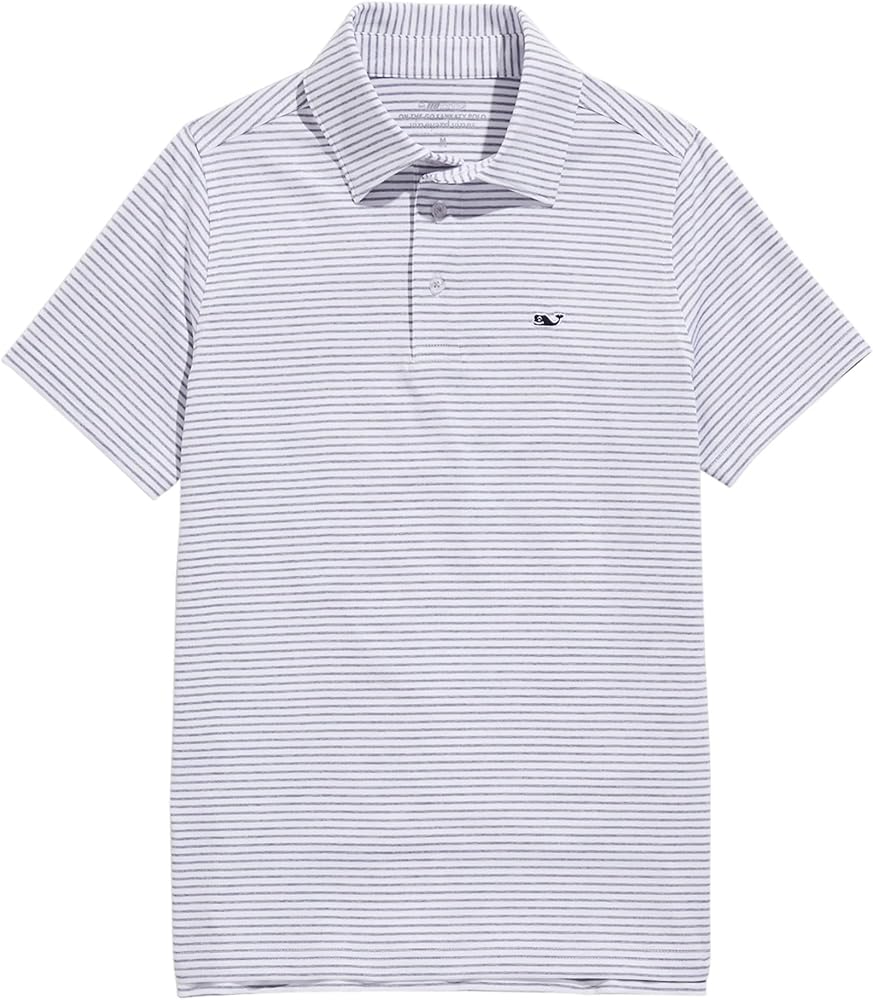 A top performer! The vineyard vines Bradley Stripe Sankaty Polo Shirts for Boys' will keep up with whatever your little guy gets into. The golf shirt for Boys' delivers the best of comfort, function, and everyday style. Engineered with quick-drying, moisture-wicking material, it brings the perfect balance of breathable durability along with UPF30+ sun protection to make it a year round closet staple. With a self-collar and straight hem, this short sleeve collared shirt has the comfortable and versatile style to take him to school, church, the playground, the golf course and everywhere in between.