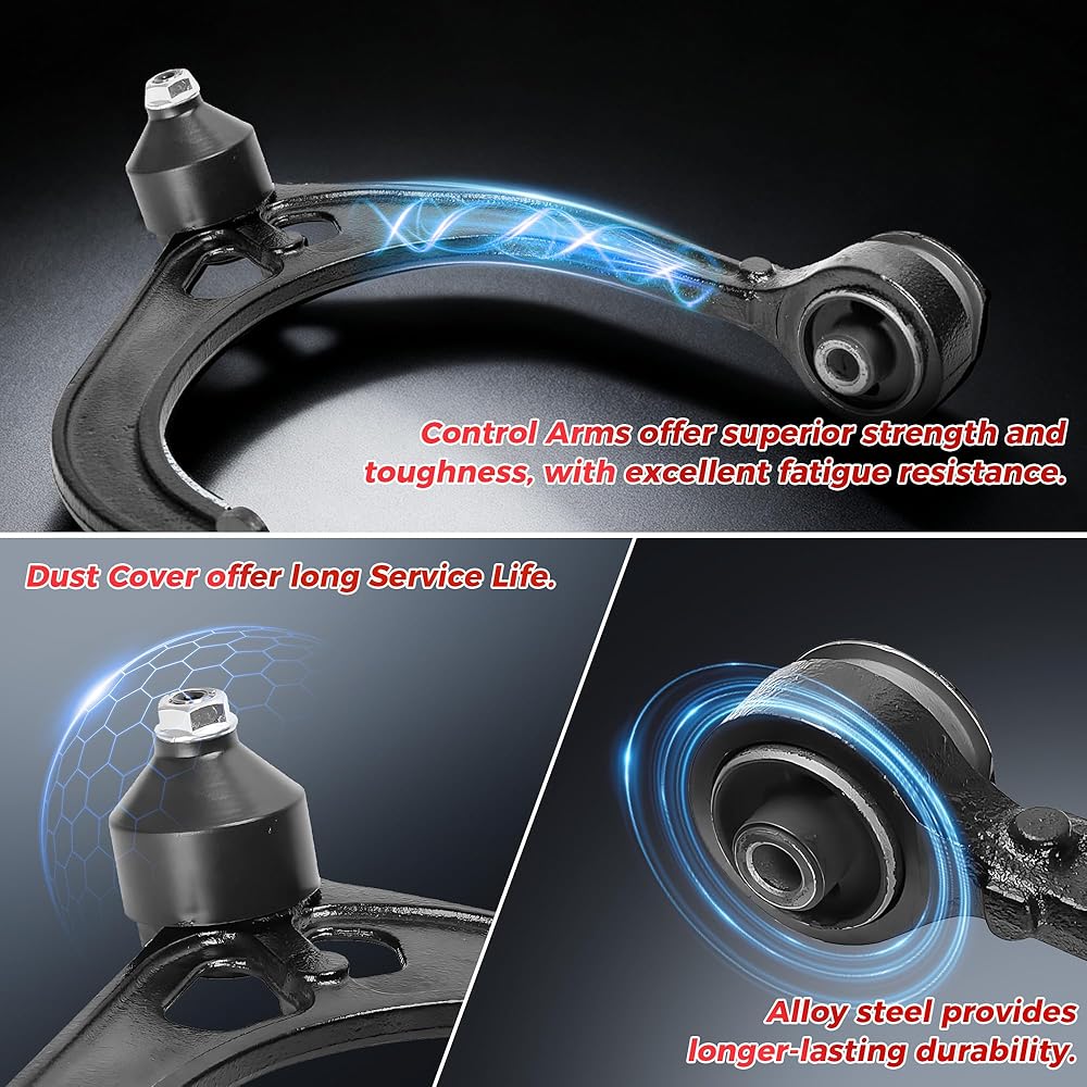 【High-Stand materials】Control Arms offer superior strength and toughness, with excellent fatigue resistance. Dust Cover offer long Service Life. Alloy steel provides longer-lasting durability.
