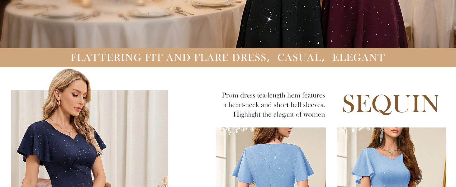 Design & Easy Care: The A-line dress and hidden back zipper ensure flare and fit, fit that complements all body shapes. The midi hemline adds a touch of sophistication, while the sparky dress is easy to care for—simply hand wash cold and hang to dry to preserve its sparkle. It is a must-have formal dress for women that combines style, comfort, and durability