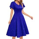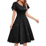 Vintage 1950s Elegant Glitter Dresses: This fit and flare A-line midi dress combines retro 1950s charm with a dazzling glitter sparkly. The romantic sweetheart neck and flowy short sleeves create a feminine, timeless silhouette that flatters curves and exudes elegance. Suit for anyone seeking elegant dresses for women with a touch of old-world