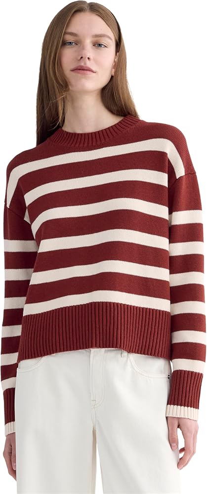 This sweater is crafted from 100% organic cotton for a soft, breathable feel designed for everyday wear. It features a boxy silhouette with dropped shoulders for a relaxed, modern look. A crew neckline and chunky rib stitch detailing at the neckline, cuffs, and hem add structure and durability. Designed for versatile layering, this sweater pairs easily over tees, shirts, or dresses and works across seasons. The regular-to-relaxed fit offers comfort without feeling bulky, making it suitable for both casual and elevated styling. Made with a focus on quality materials and long-lasting wear, it's a timeless essential built to stay in rotation year after year.