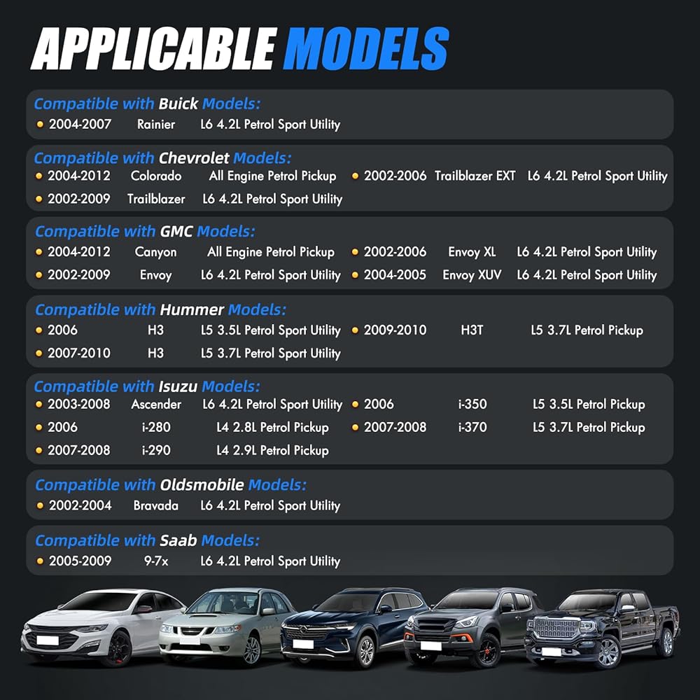 Vehicle Fitment for Buick & Chevrolet & GMC - Sorghum variable valve timing solenoid compatible with Buick Rainier 2004-2007 L6 4.2L Petrol Sport Utility and Chevrolet Colorado 2004-2012 All Engine Petrol Pickup, Trailblazer 2002-2009 L6 4.2L Petrol Sport Utility, Trailblazer EXT 2002-2006 L6 4.2L Petrol Sport Utility and GMC Canyon 2004-2012 All Engine Petrol Pickup, Envoy 2002-2009 L6 4.2L Petrol Sport Utility, Envoy XL 2002-2006 L6 4.2L Petrol Sport Utility, Envoy XUV 2004-2005 L6 4.2L Petrol Sport Utility.