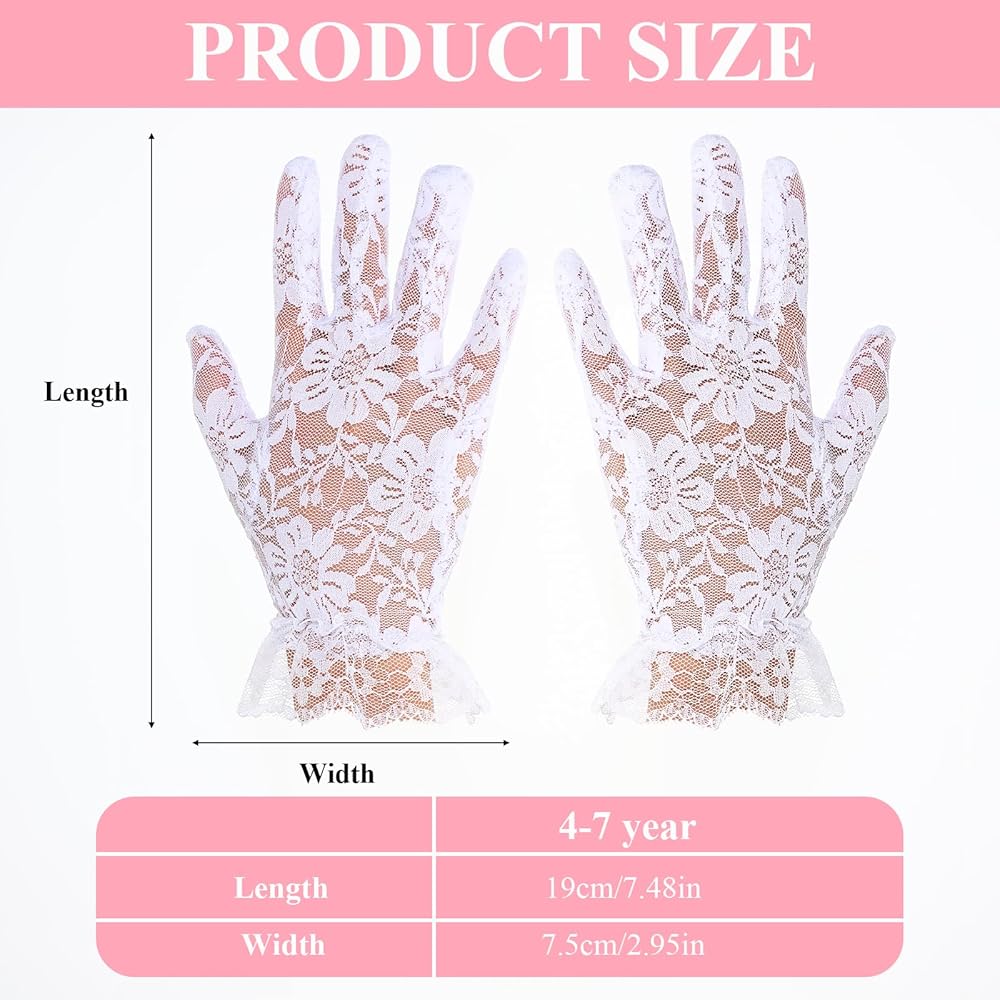 Whether for a wedding, pageant, tea party, or imaginative play, these lace gloves provide a comfortable and stylish accessory for your little princess.