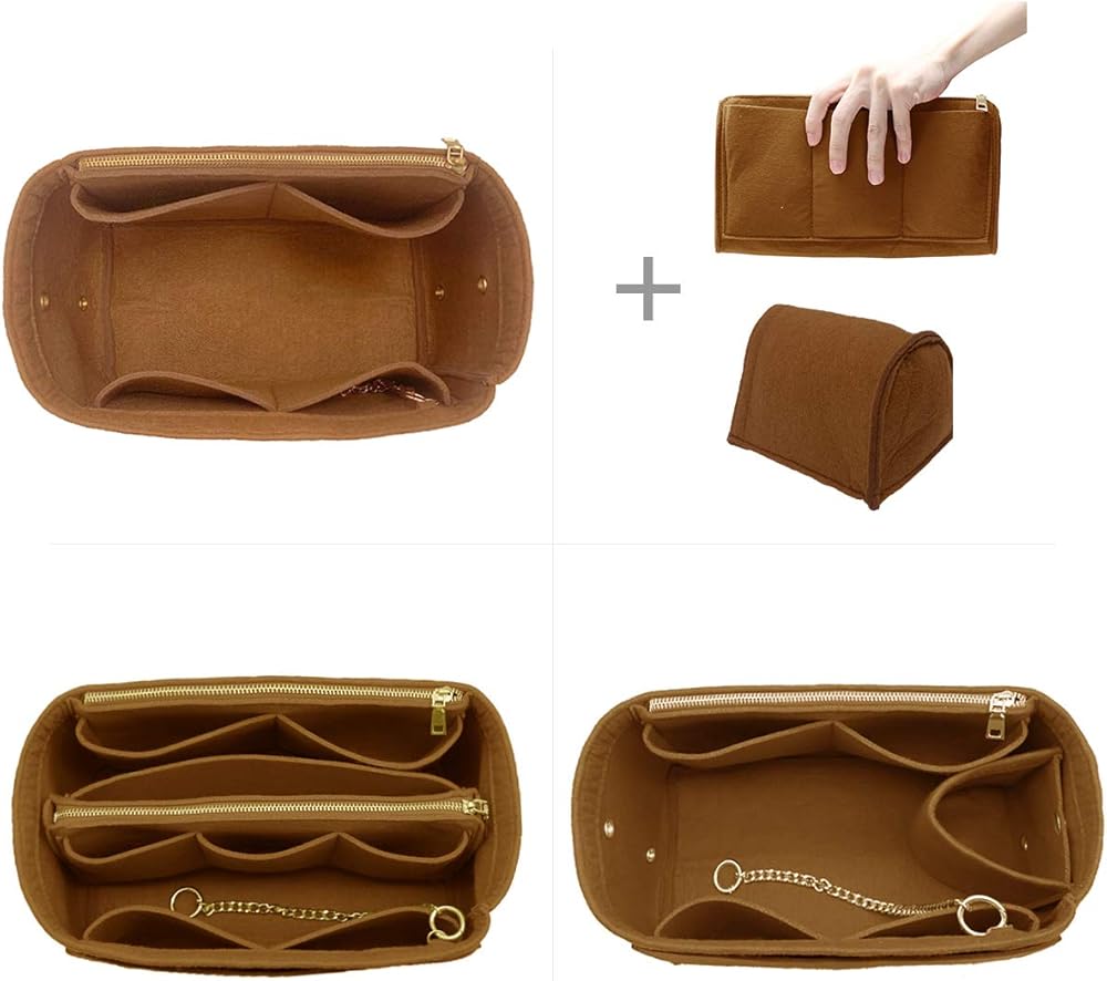 UPDATED DESIGN FOR DELICATE CLASSIFICATION : 12 Pockets Total Purse Organizer ,1 exterior pockets, 2 Pockets with zipper ,8 interior pockets,with a bottle holder for replacing .Keep Your Items Like Wallet, Cosmetics, Notebook and suitable For a Small IPad or Kindle. Keeps Your Handbag Shape and Shipshape with more Delicate Classification.Extra detachable long High-quality Metal keys chain help find the keys easily