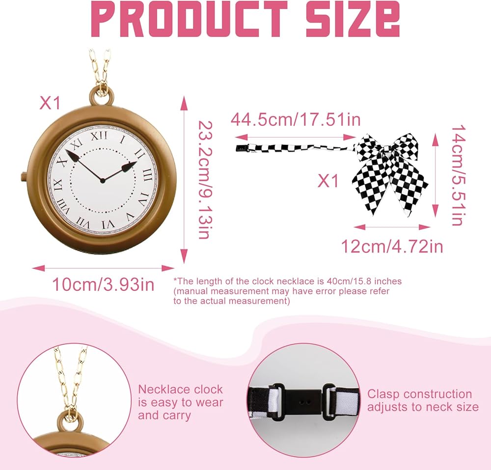 Quick DIY Costume for 10+ Holiday Themes:Transform into magical storybook characters in 3 seconds! Pair the vintage clock necklace with lace gloves for enchanted garden parties, style the adjustable bunny ears headband upside-down for quirky tea time cosplay. Ideal for Easter bunny egg hunts, Halloween rabbit costumes, Christmas plays etc.
