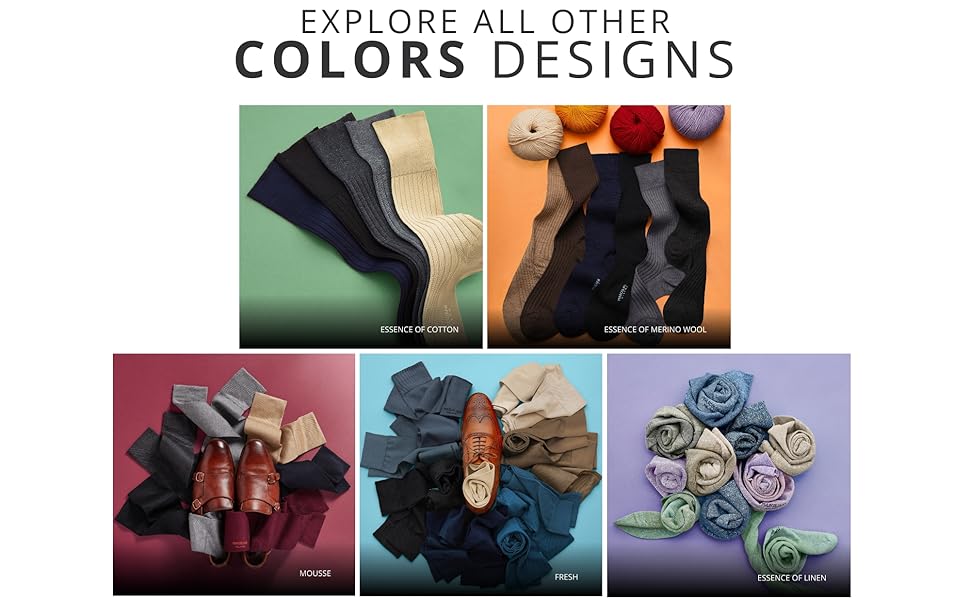 Colors — Material reduced to its purest expression. A line built around clarity and balance, where the quality of fibers and the precision of craftsmanship define the design. Color remains essential, supported by clean construction and natural comfort. Created for men who value restraint over excess, Colors treats the sock as a quiet yet confident expression of style.