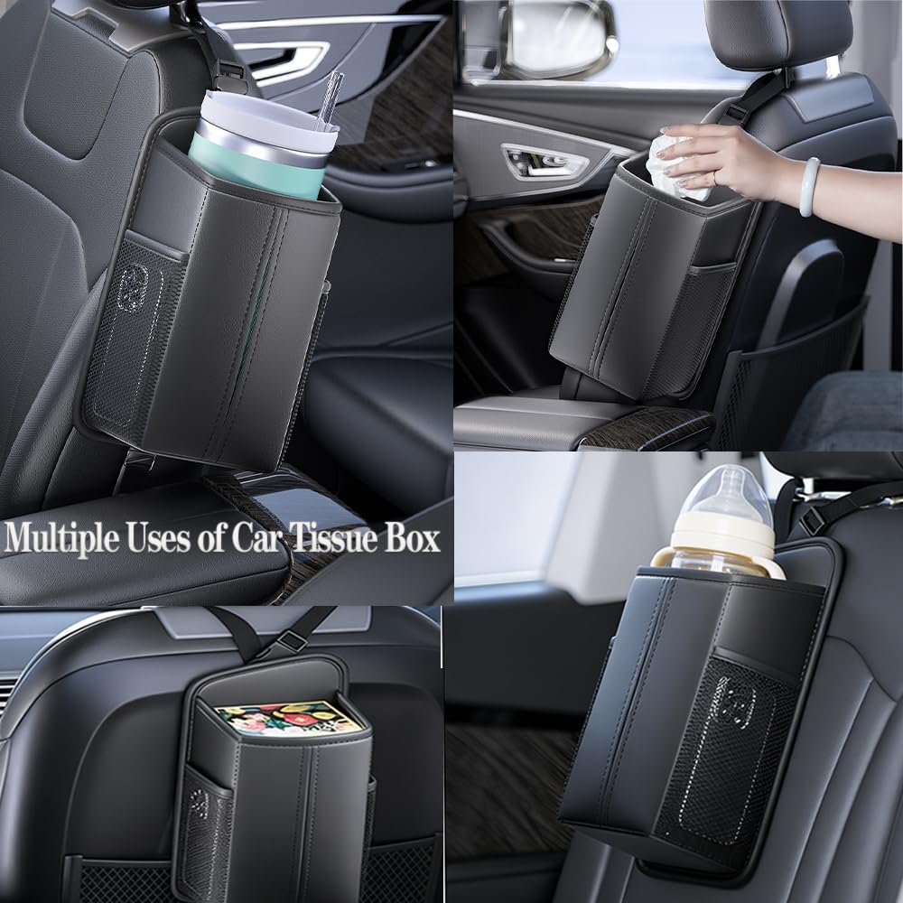 Car Tissue Holder, Multi-Purpose Car Storage Organizer, Fits Large Tissue Box, Side Pockets for Phone, Waterproof, Universal Fit for Vehicle Seat Side Back and Front