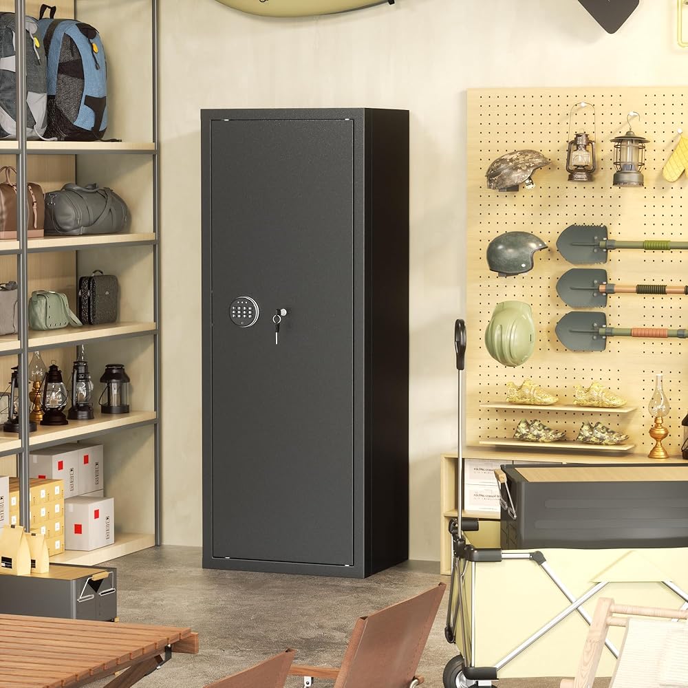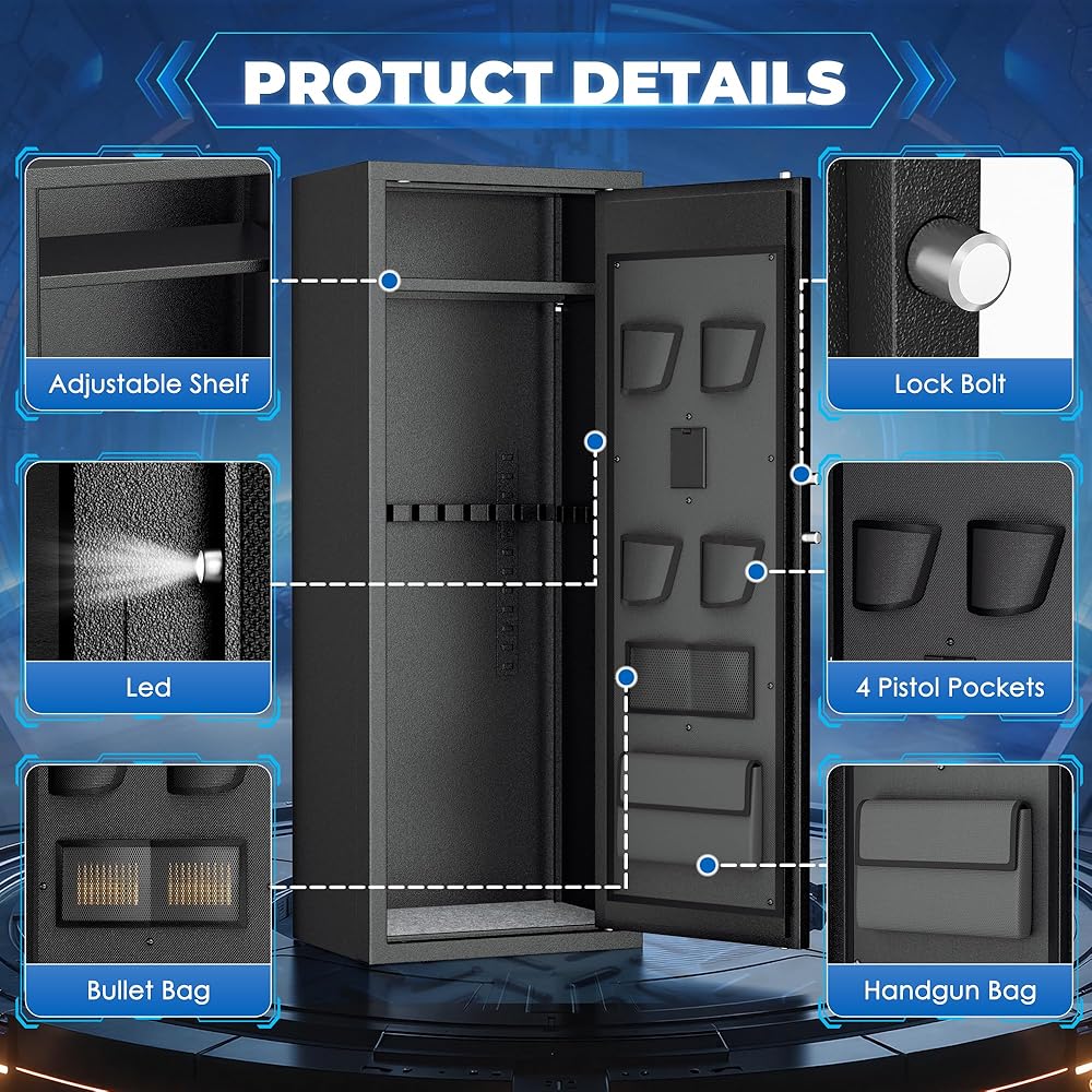 ✅【Silencing and Locking System Rifle Safe】The gun cabinet has silent and locking system, long press the "*" sign, you can enter the silent mode, so that you can have a quiet use environment; password input error 5 times, the gun cabinet will be locked, which will effectively protect your gun cabinet.