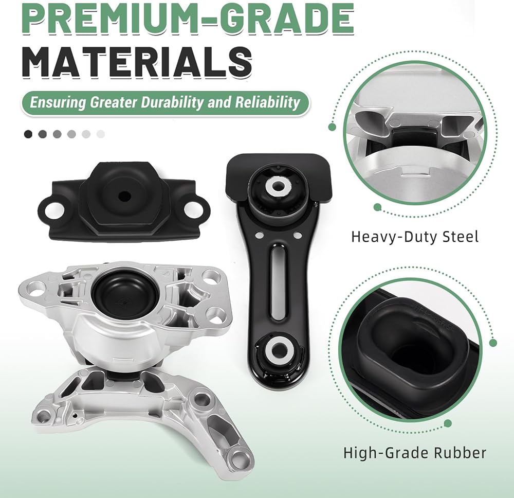 【Premium Quality】Crafted with high-grade rubber and heavy-duty steel, VORGENS engine motor transmission mounts feature excellent wear resistance, aging resistance, and load-bearing capacity. The rubber component effectively absorbs engine vibrations and reduces noise, while the steel bracket provides strong structural support to prevent cracking or deformation even under extreme driving conditions.