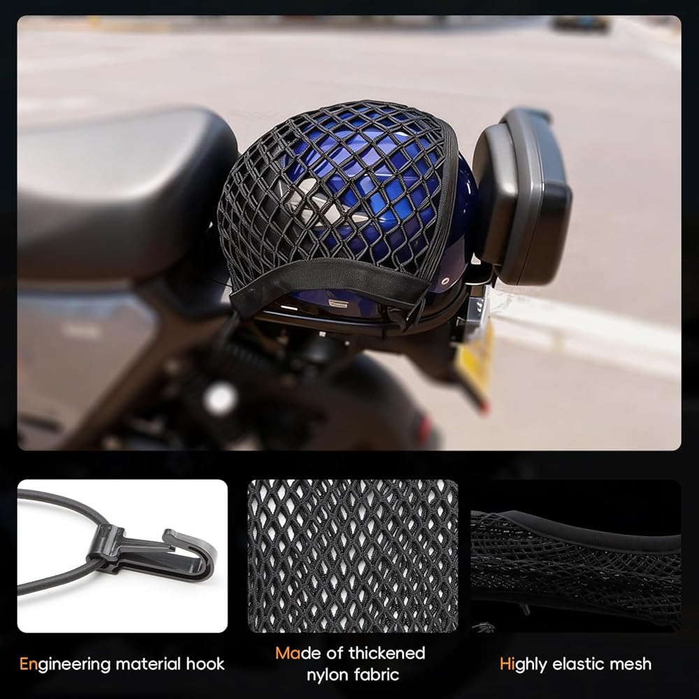 【Unique Design】 The cargo net adopts a double-layer design that secures items while doubling as an extra mesh storage pouch—boosting your motorcycle's storage space.