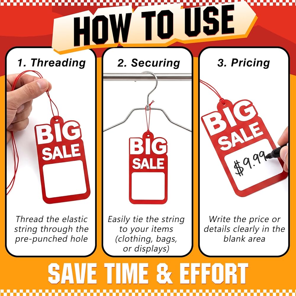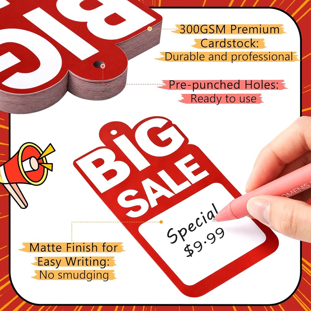 Pre-attached strings allow for quick setup, saving time during store displays or sales events. Whether you're running a short-term sales or organizing long-term retail displays, these sale tags are a practical solution.