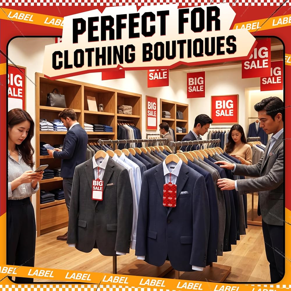 The brownish-red color naturally draws attention, making them ideal for clothing stores, racks, garage sales, and flea markets. Each tag offers a smooth, writable surface with plenty of space for pricing, discount percentages, or item details.