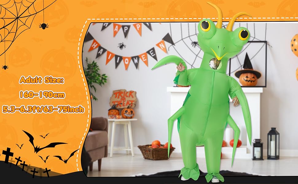 • 【Unique Design】Our fun inflatable mantis costume has an overall cute shape, adorable expression and bright colors, will make you the center of attention at your next party!
