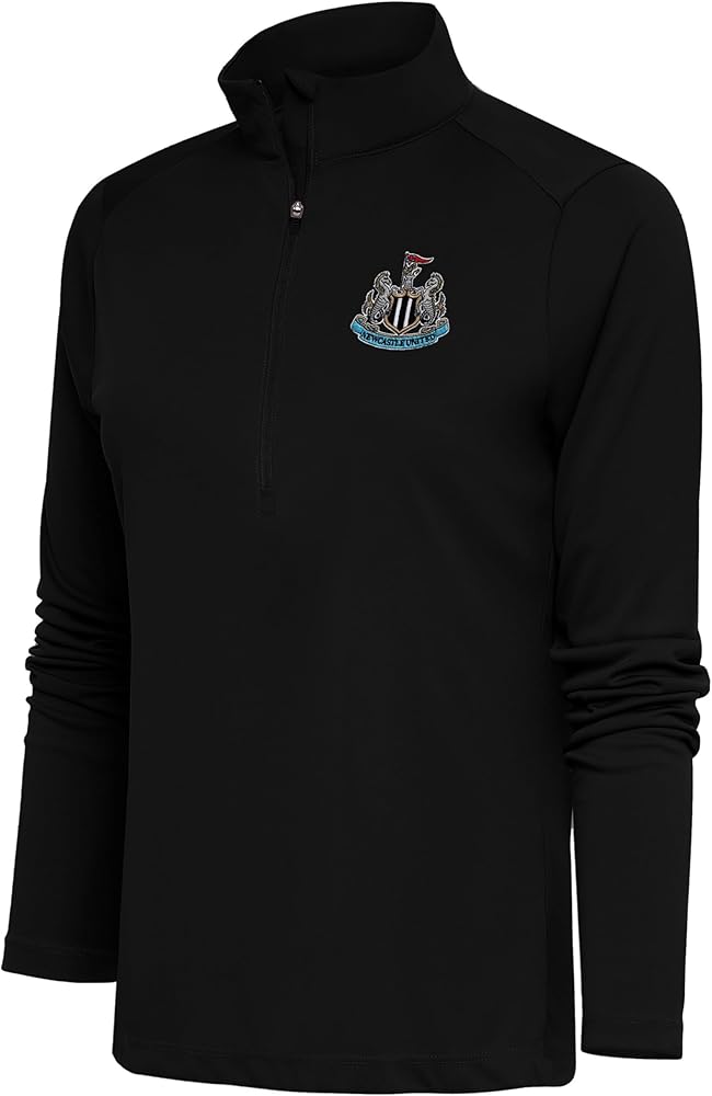 Elevate your gameday style with this Newcastle United Women's Statement Half Zip Pullover. This classic quarter-zip design offers the perfect layering piece for any activity, from cheering in the stands to casual everyday wear. Crafted from premium 100% polyester interlock knit fabric at 175gsm, this pullover delivers exceptional moisture-wicking performance while maintaining superior comfort. The white colorway features team branding, making it an essential piece for any Newcastle United supporter. The versatile design transitions seamlessly from matchday to everyday activities, while the durable construction ensures lasting wear. The pullover's athletic fit flatters the feminine silhouette while allowing freedom of movement. Easy-care properties make this garment practical for regular wear, maintaining its quality wash after wash. Available in various sizes, this pullover combines functionality with team pride for the dedicated female football fan.