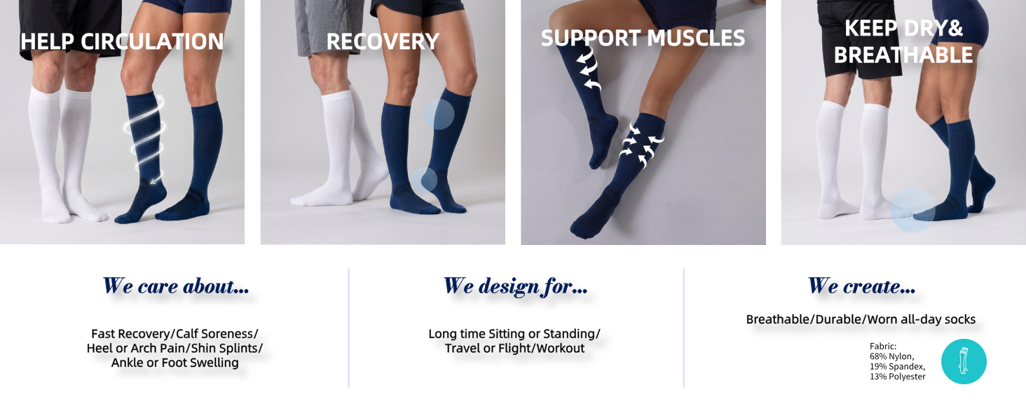 ALL DAY COMFORT: Compression socks for men and women are made of breathable and lightweight materials. Advanced nylon-spandex blend with rapid dry performance pulls sweat away. Available to be machine washable with elasticity and durability. High stretch adapts to skin contours, ensuring all-day wearing comfort.