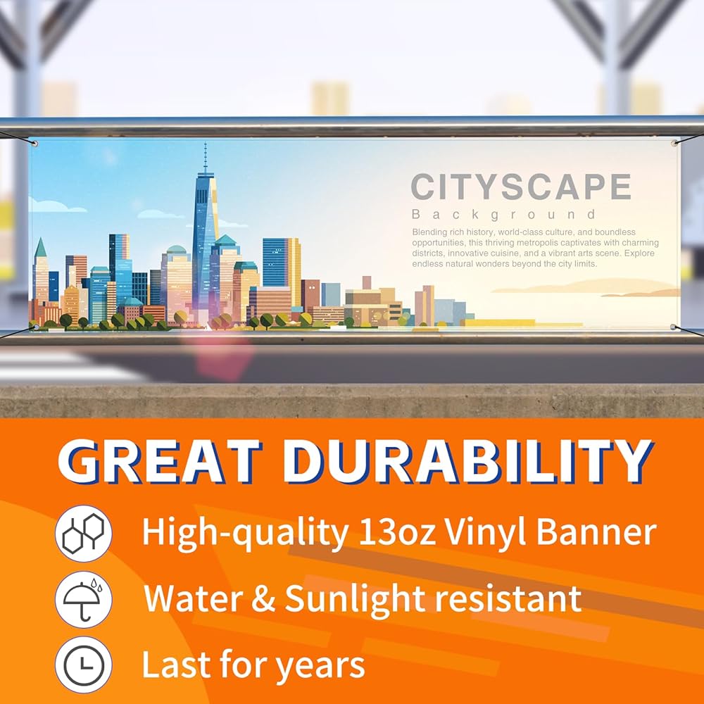 Premium Vinyl Material: Waterproof, UV resistant, tear-resistant, no-crease, sturdy and reusable, lightweight, easy to carry and hang. Great painting technique presents vibrant colors and sharp details. Ideal choice for your business or party