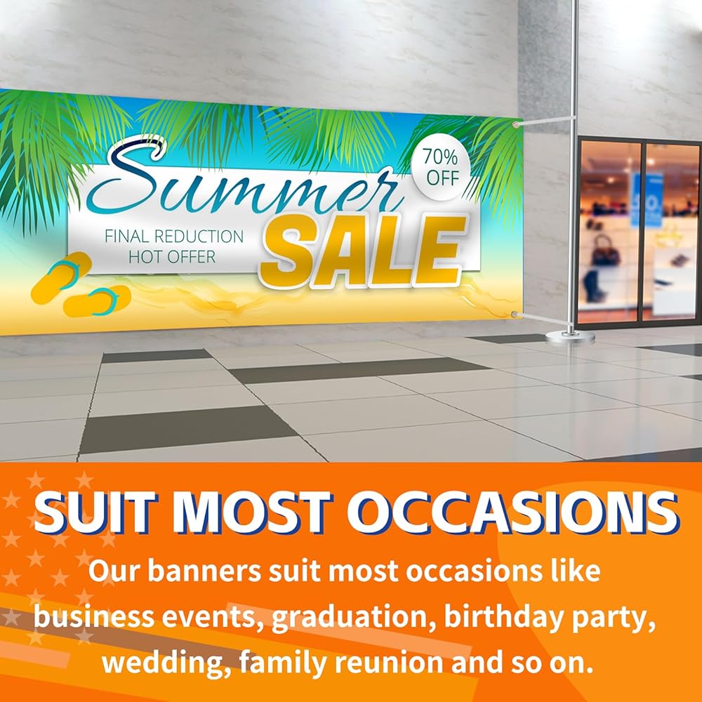 Durability & User-Friendly Design: Single-sided fabric banner, fade-resistant, easy to clean with a wipe; Our banners are equipped with grommets, easier to set up for versatile suspension