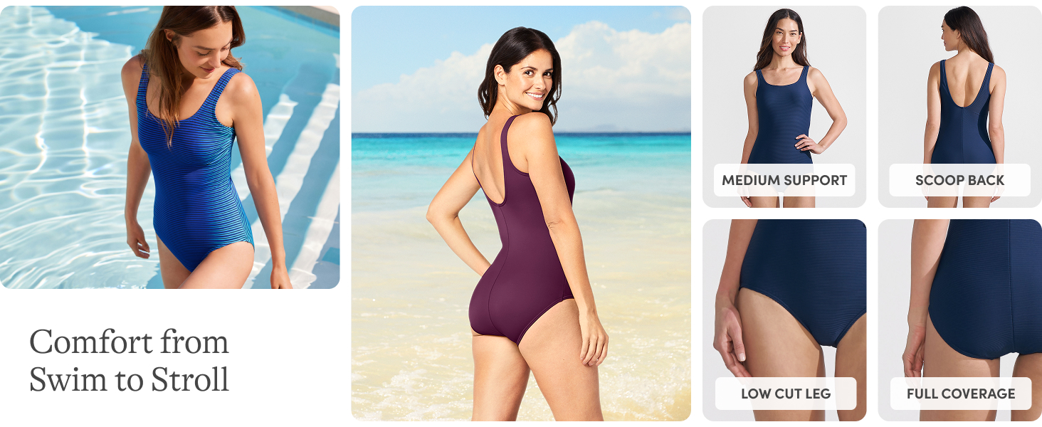 Flattering Coverage: Built-in shaping smooths the waist and hips for a streamlined look; modest swimsuit with lower cut leg openings that offer enhanced coverage; ideal for women seeking a classic style that's versatile and confidence-boosting