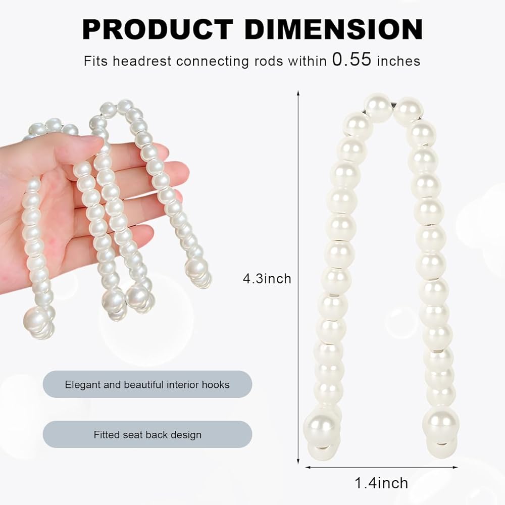 2PCS Elegant Pearl Car Seat Headrest Hook, Cute Back Seat Storage Hanger Dainty Purse Holder, Universal Headrest Pearl Hook Exquisite Auto Interior Decor for Women Girls
