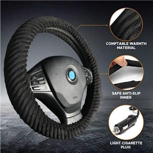 "💎 إحساس فاخر: حوّل كل رحلة قيادة إلى لحظة من الرفاهية. يضيف غطاء عجلة القيادة المدفأ لمسة من الفخامة اليومية، ويحول سيارتك إلى ملاذ دافئ وجذاب. انزلق خلف عجلة القيادة واشعر بالدفء الناعم والمهدئ - مثل تجربة المنتجع الصحي ليديك - في كل مرة تقود فيها."