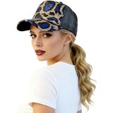 Sparkly Sequin Leopard Print Baseball Cap for Women Breathable Shimmer Ponytail Trucker Hat Outdoors Sun Caps in Kuwait