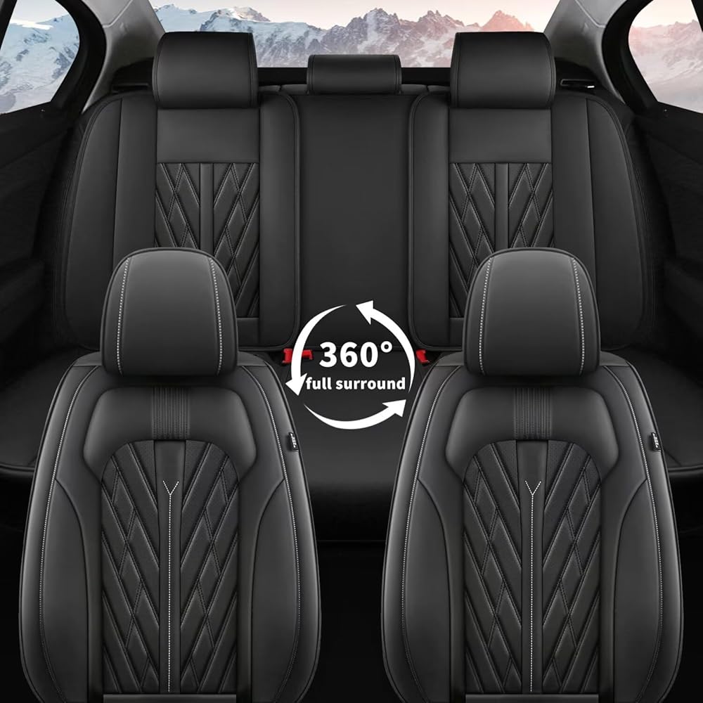 TTX LIGHTING Seat Covers for Car Full Set Fit for Hyundai Kona 2018-2026 Leather Seat Covers Breathable Waterproof Seat Protectors Automotive Seat Cushion with Airbag Compatible (Black)