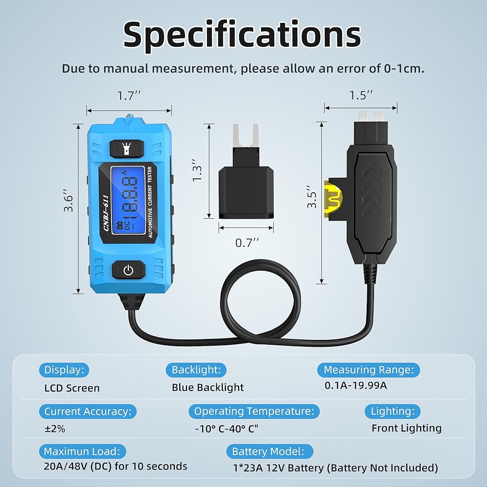 Compact & Versatile: It is ideal for a wide range of vehicles, from personal cars to commercial trucks. Its lightweight, portable design makes the fuse current tester perfect for electrical troubleshooting anywhere
