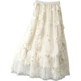 Features: Elastic high-waist band ensures a snug, customized fit for all body types. Layered ruffled tulle for a voluminous, whimsical silhouette. Reinforced stitching at the waistband ensures durability, and the neutral color palette (ivory, cream) complements any wardrobe.