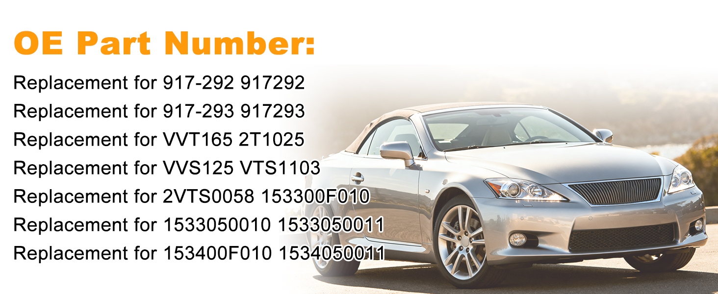 OEM Part Number: The intake & exhaust oil control valve solenoid replacement for 917-292, 917292, VVT165, 2T1025, VVS125, VTS1103, 2VTS0058, 153300F010, 1533050010, 1533050011,153400F010, 1534050011, 917-293, 917293