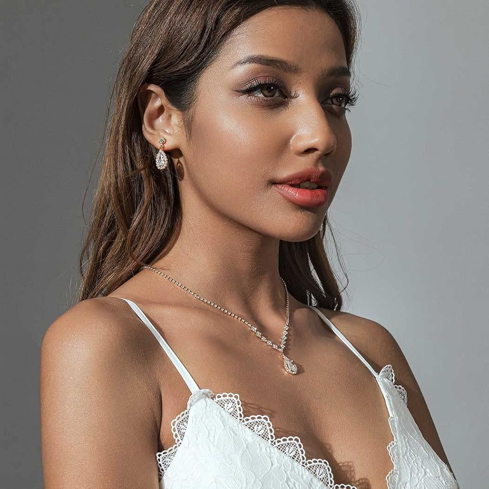 Prom earrings necklace set fits for wedding, engagements, bridal shower, baby shower, proms, parties and other meaningful events. Women bridal jewelry sets will surely win you many compliments.