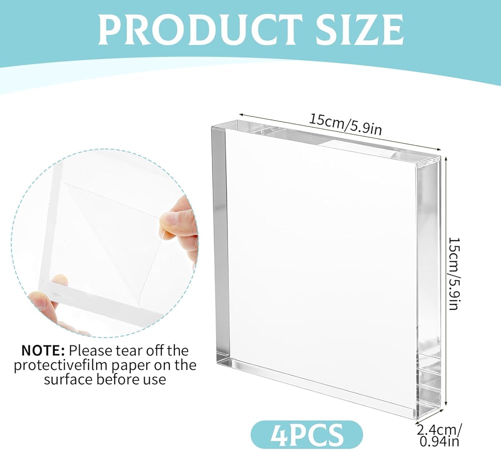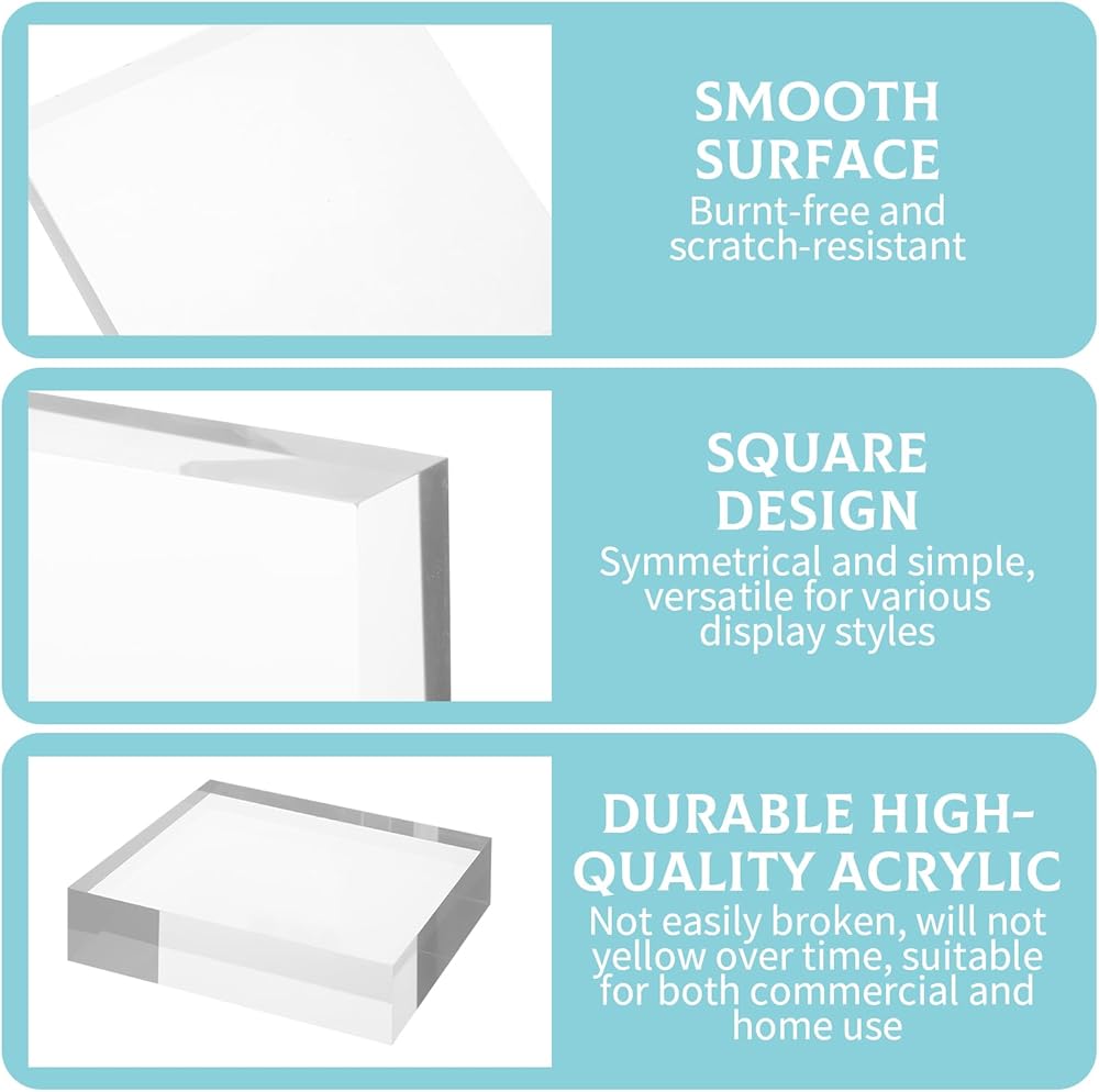 Suitable Size for Display: Each acrylic display block measures about 6 x 6 x 1 inches / 15 x 15 x 2.4 cm, offering a balanced size that is easy to place, store, and carry. This size provides enough surface area to highlight items clearly without taking up excessive space