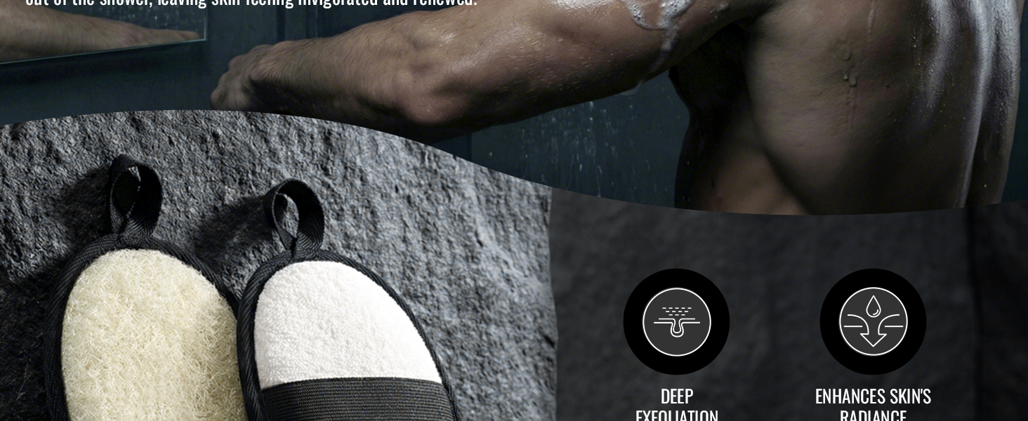 【SECURE GRIP & EASY TO HOLD】Designed with the modern man in mind, these loofah pads are engineered for a secure grip even in soapy conditions. Unlike bulky brushes, our ergonomic shape ensures full-body coverage, including hard-to-reach areas.