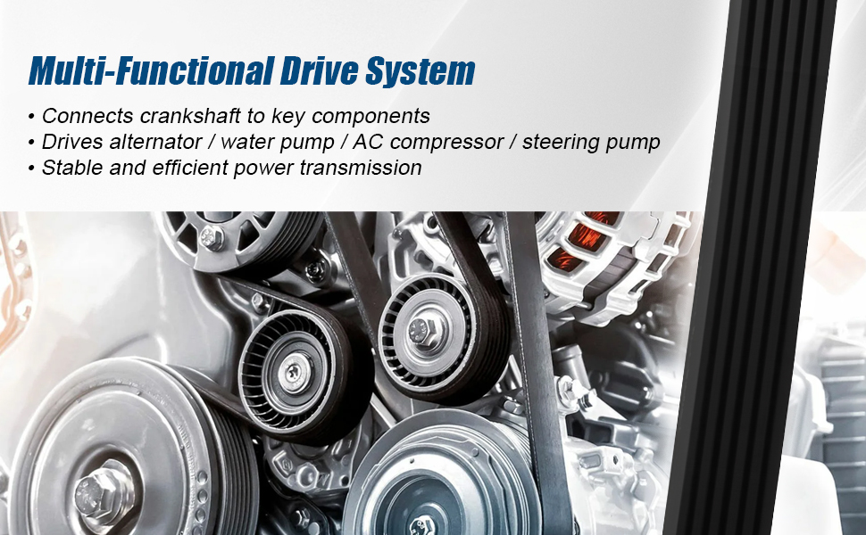 Efficient Power Transmission: Engine drive belt is tightly connected to engine crankshaft, efficiently transmitting power to key components such as alternator, water pump, air conditioning compressor, and power steering pump, maintaining stable operation of each system and making engine run more smoothly and powerfully