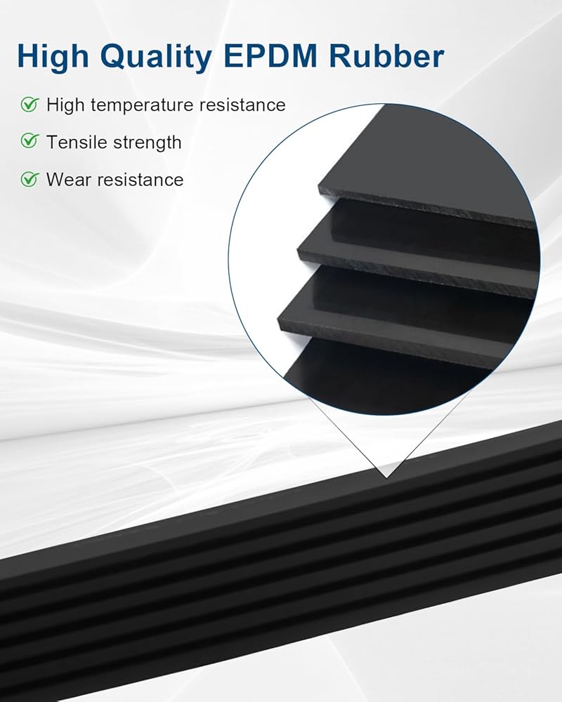 Durable Structure, Not Easily Broken: Drive belt is made of high-quality EPDM rubber, which possesses good high-temperature resistance, tensile strength, and abrasion resistance, it maintains stable tension under high speeds or harsh environments, reducing risk of slippage and breakage, and extending service life