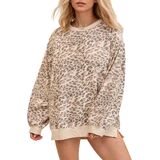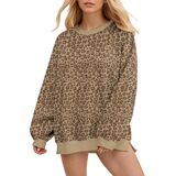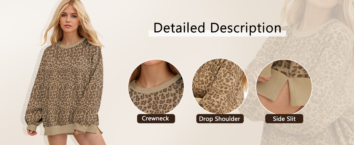 Material: Women oversized leopard print sweatshirts is made of good quality cotton blend fabric, with a fleece lining and provide you comfrotable, breathable and lightweight feel, warmth and cozy during fall winter cool days