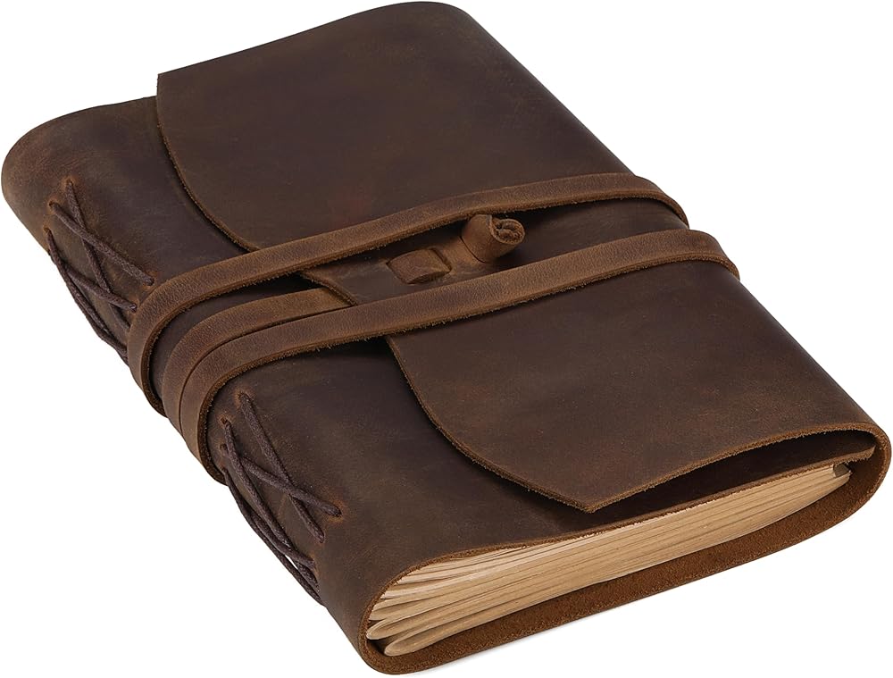 Size of Leather Bound Notebook: Measuring approximately 7.5'' × 5.5'' , this leather vintage journal is easy to carry and suitable for travel or everyday use. It can also be used as a handwritten account book, travel diary, family record book, appointment planner, daily diary, sketchbook, drawing book, or work log