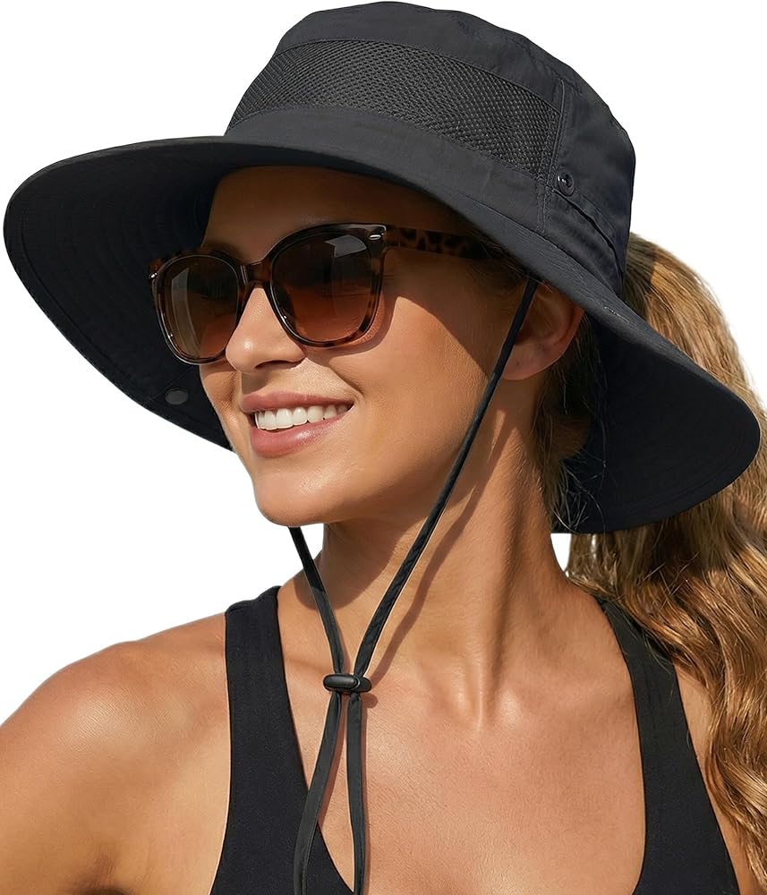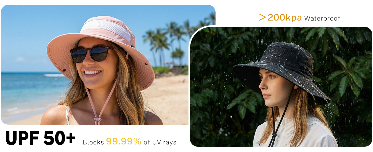 Breathable & Quick-Dry for Beach: Engineered with moisture-wicking fabric and quick-dry technology, this beach hat for women keeps you cool and dry even in hot, humid conditions. The adjustable inner band guarantees a snug, personalized fit, perfect for seaside escapes or outdoor workouts